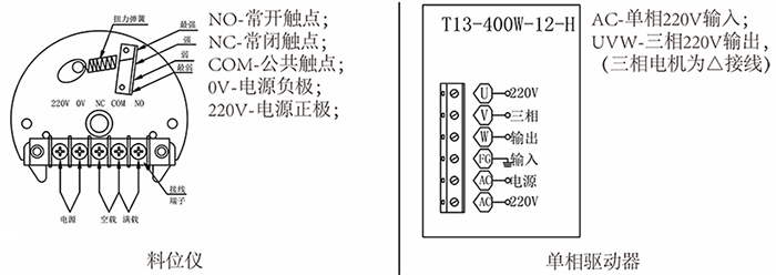 * 振動(dòng)器可用PLC或時(shí)間繼電器設(shè)置為通電1min,斷電10min;